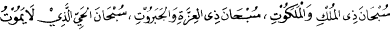 "Maha suci yang memiliki kerajaan dan kekuasaan seluruh alam semesta, Maha suci yang memiliki kemuliaan dan kemahakuasaan, Maha suci yang hidup kekal dan tidak mati." (HR. Ad-Dailami)